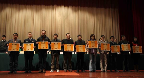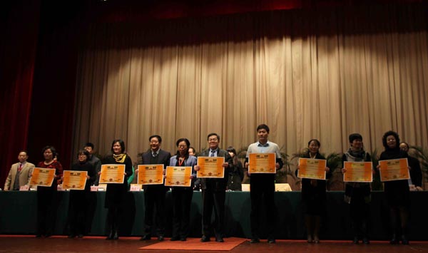 随后,本会副理事长兼秘书长郑进宝编审宣布领奖代表名单。精品、优秀、特色科技期刊的代表,在热烈的掌声中依次上台领奖。中国海洋大学期刊社社长鲍洪彤、西北农林科技大学《干旱地区农业研究》编辑部主任翟惠平、北京工商大学学报编辑部主任叶红波分别代表精品、优秀、特色获奖期刊发言。他们感谢教育部科技司和研究会开展的评比活动,介绍了所办期刊在精品化、专业化、特色化及队伍建设方面的宝贵经验,并表示要在深化期刊出版体制改革的新形势下,抢抓机遇,努力攀登,为进一步提高期刊的质量而努力奋斗。