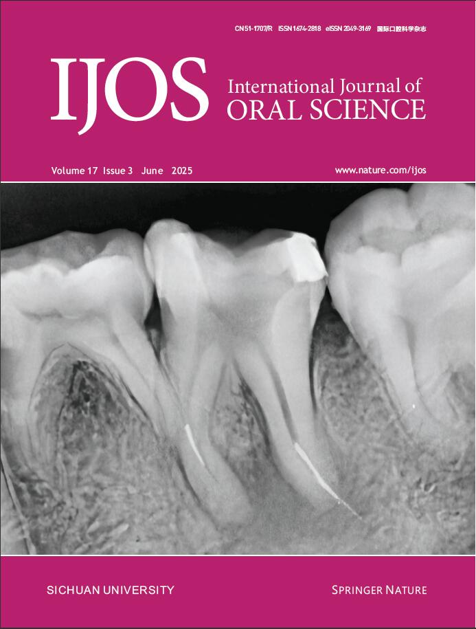 《国际口腔科学杂志(英文版)》(简称IJOS)是由中华人民共和国教育部主管、四川大学主办,四川大学华西口腔医学院于2009年创办的口腔医学英文学术期刊。目前被SCI-E收录,代表了高水平中国口腔医学期刊。IJOS在全球SCI-E收录的同类期刊中,连续8年位居Q1区,已经进入世界权威口腔医学期刊行列,并收录于Pubmed、Scopus、CABI、IC等国际知名数据库。