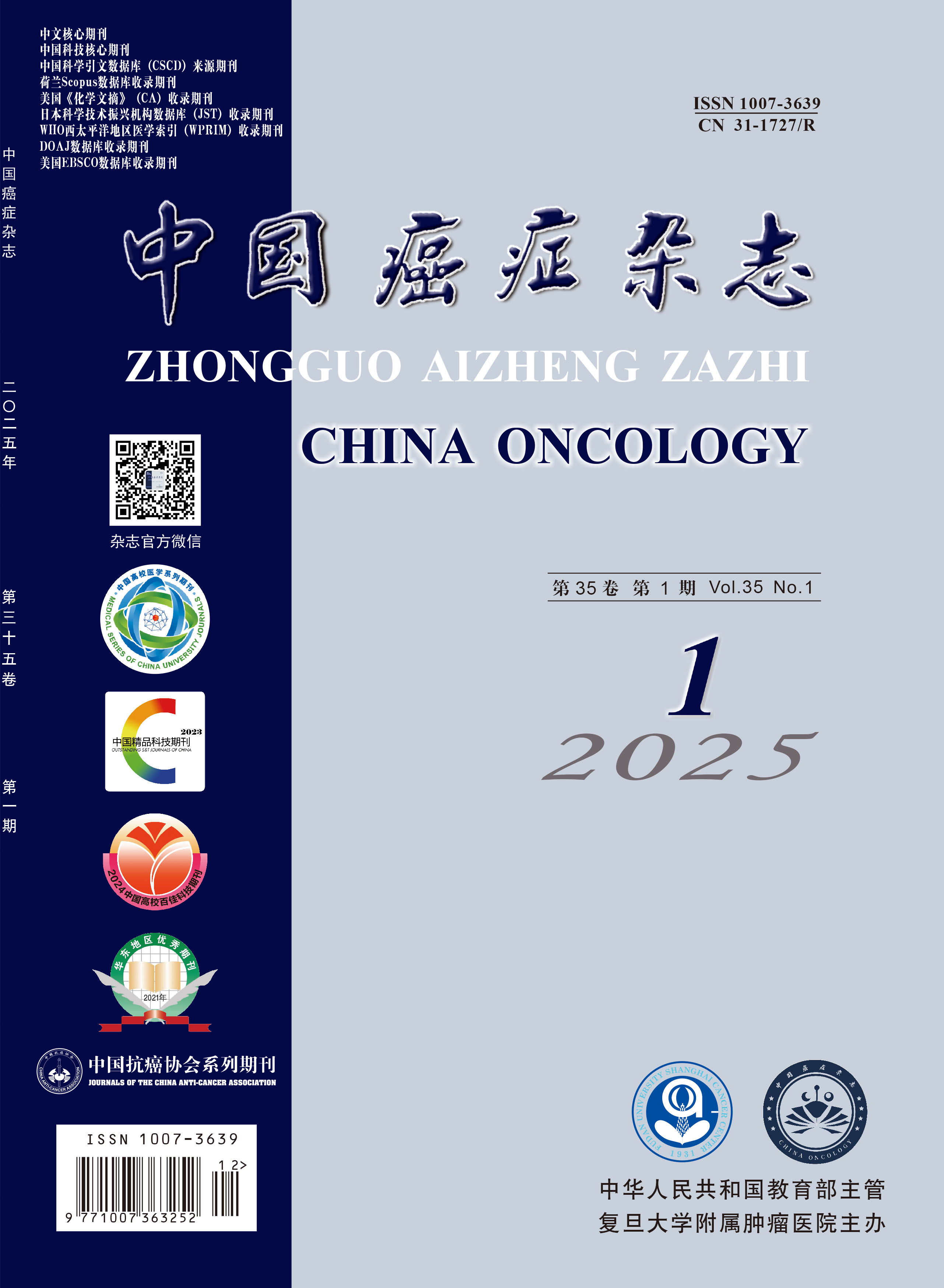 | 刊 名: | 中国癌症杂志 | 省市: | 上海市 | CN号: | 31-1727/R | ||||||||||||||||||||||||||||||||