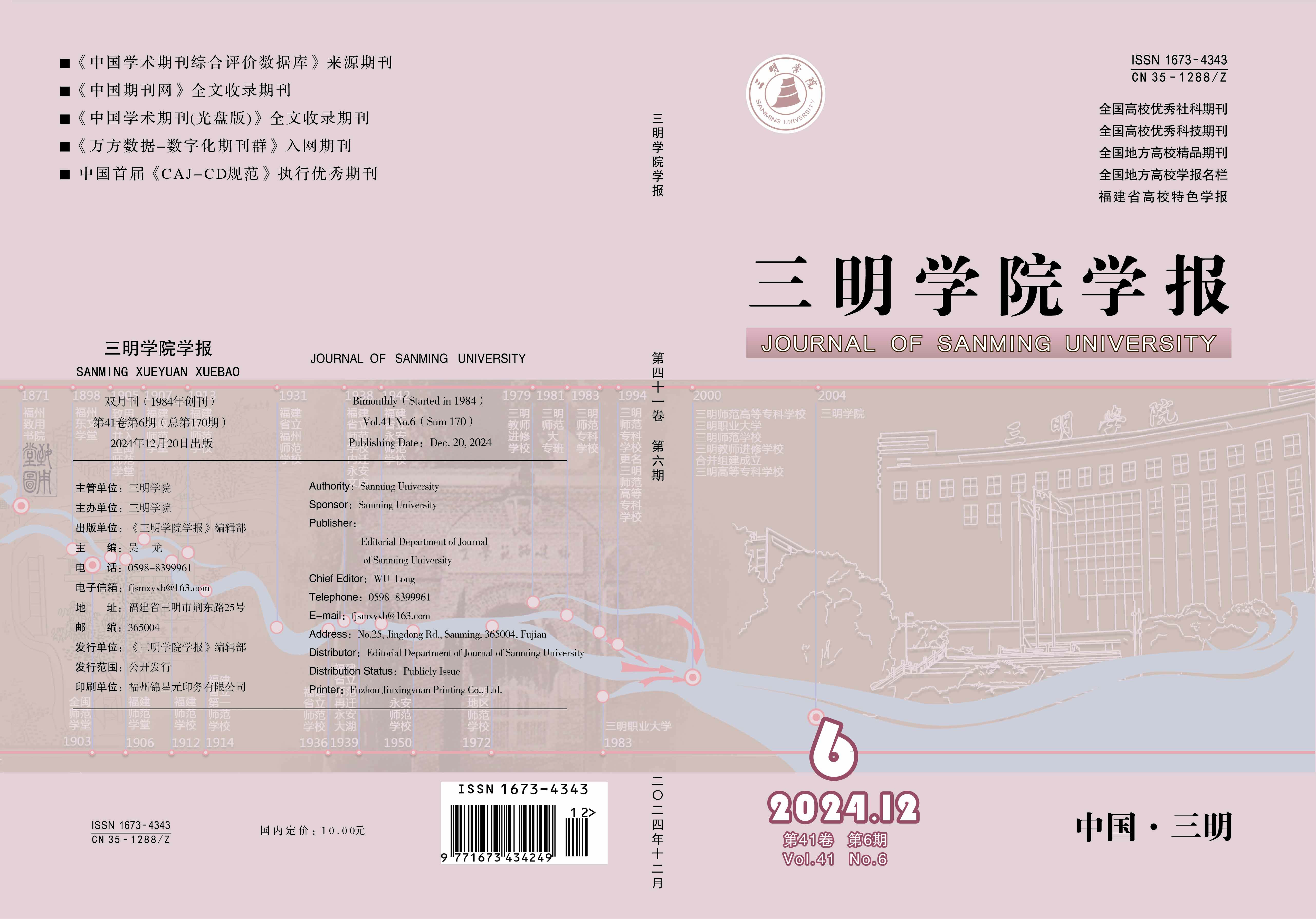 | 期刊简介: | 《三明学院学报》创刊于1984年5月,是由三明学院主管、主办,面向国内外公开发行的综合性学术期刊(双月刊)。本刊坚持以马克思主义和习近平新时代中国特色社会主义思想为指导,本着“立足区域、弘扬学术、经世致用”的办刊理念,注重学术性、开放性和应用性,致力于推动学科发展与创新、促进学术交流与合作、服务地方经济社会建设。 | ![]() |